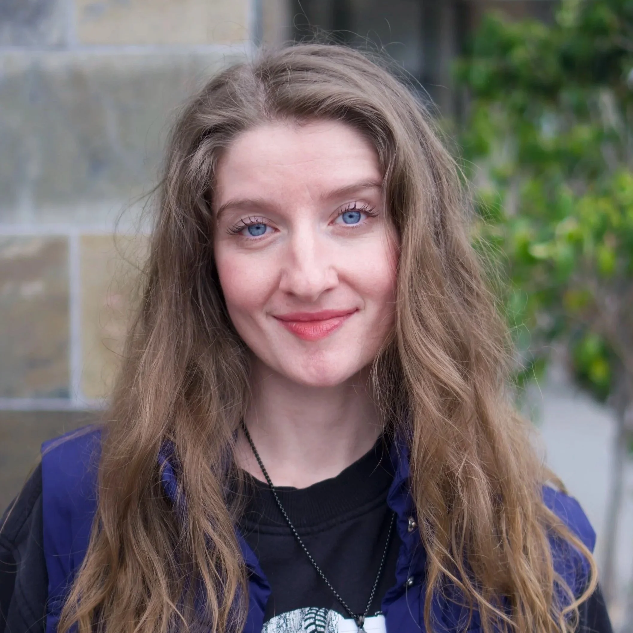 When she’s not in the studio, she enjoys frolicking in the grass with her two Australian Shepherd pups.